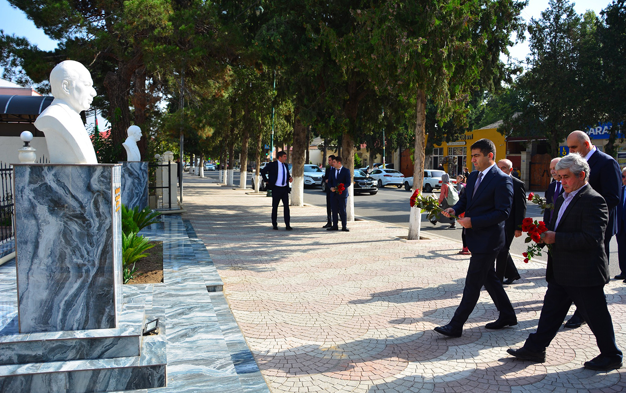 Əvvəlcə Ağstafa şəhəri, Heydər Əliyev prospektində Xalq şairinin büstü ziyarət olunub.