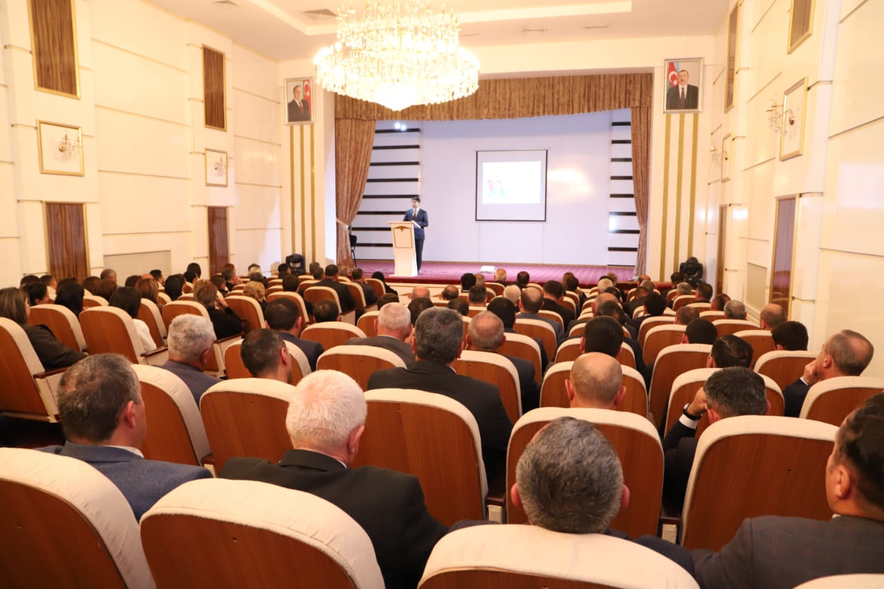 Ümumrayon tədbirini giriş sözü ilə açan RİH başçısı bildirib ki, Ümummilli Lider Heydər Əliyevin rəhbərliyi ilə hazırlanmış və 1995-ci ildə qəbul olunmuş Konstitusiya müasir müstəqil Azərbaycanın ilk Konstitusiyasıdır. Bu Konstitusiya dövlətin və xalqın milli maraqlarını, həmçinin ölkəmizin özünəməxsus xüsusiyyətlərini özündə əks etdirməklə, dövrün çağırışlarına və tələblərinə tam cavab verən mükəmməl sənəd olaraq qəbul edildi. Konstitusiyamızın qəbul edilməsinin 30-cu və Vətən müharibəsində qazanılan Zəfərimizin 5-ci ildönümü münasibəti ilə Prezident İlham Əliyevin ölkəmizdə “Konstitusiya və Suverenlik İli”nin elan etdiyi 2025-ci il də Azərbaycanın şanlı tarixinə qızıl hərflərlə yazılan möhtəşəm nəaliyyətlər və qələbələrlə həkk olundu.
