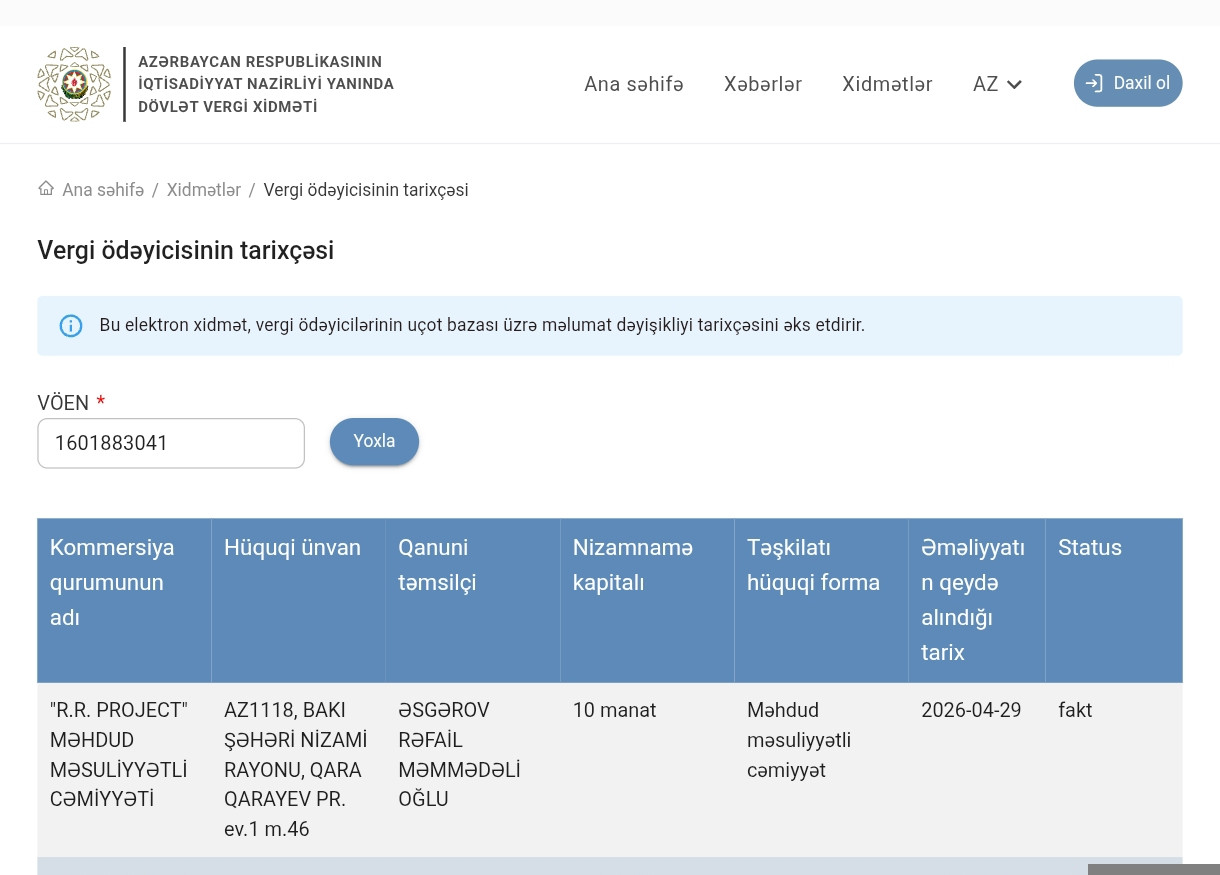 Bildirək ki, nizamnamə kapitalı 10 manat olan MMC-nin qanuni təmsilçisi Əsgərov Rəfail Məmmədəli oğludur.