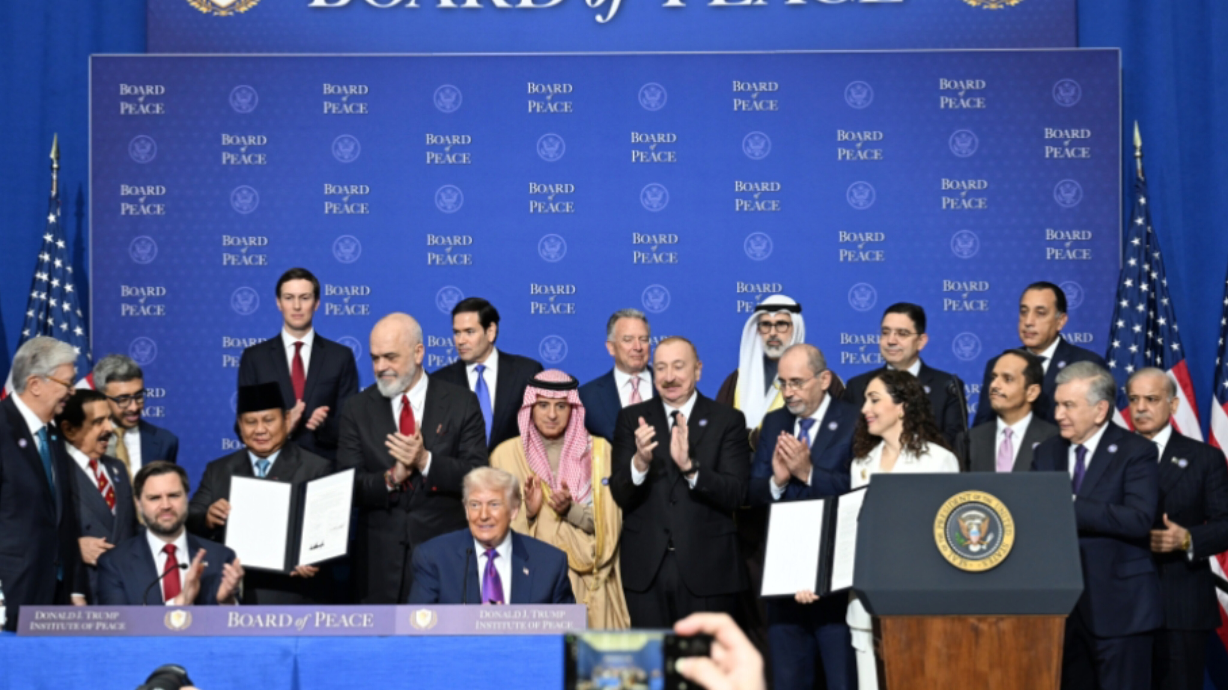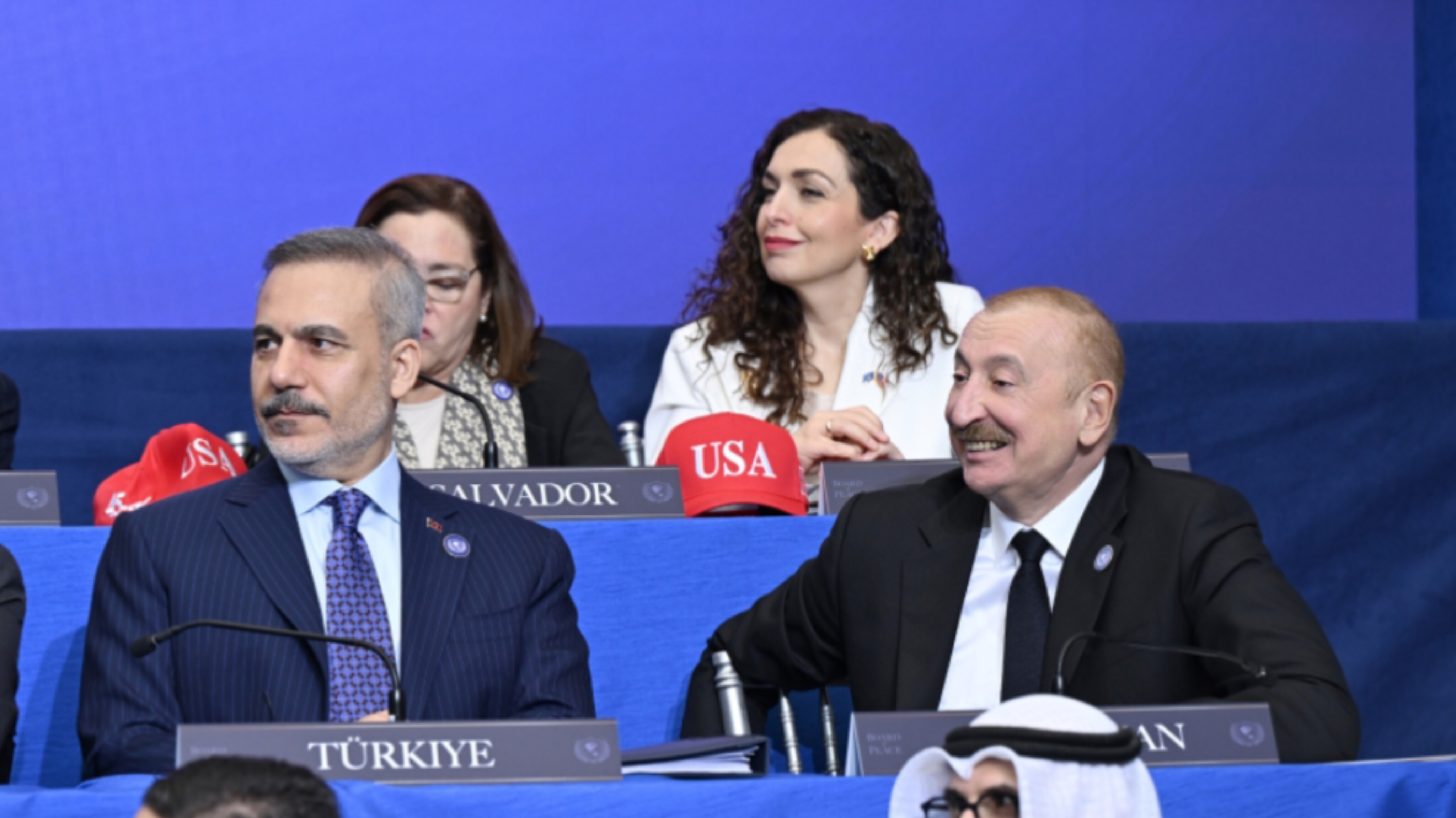 “XALQ” xəbər verir ki, Azərbaycan Respublikasının Prezidenti İlham Əliyev Amerika Birləşmiş Ştatlarının Prezidenti Donald Trampın dəvəti ilə iclasda iştirak edib.