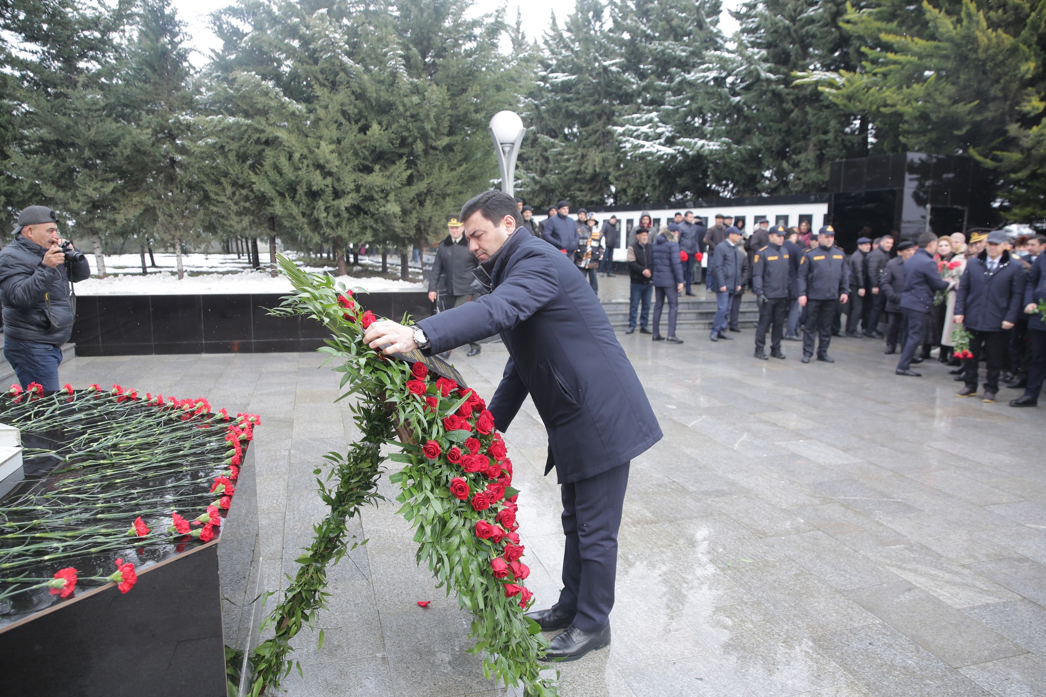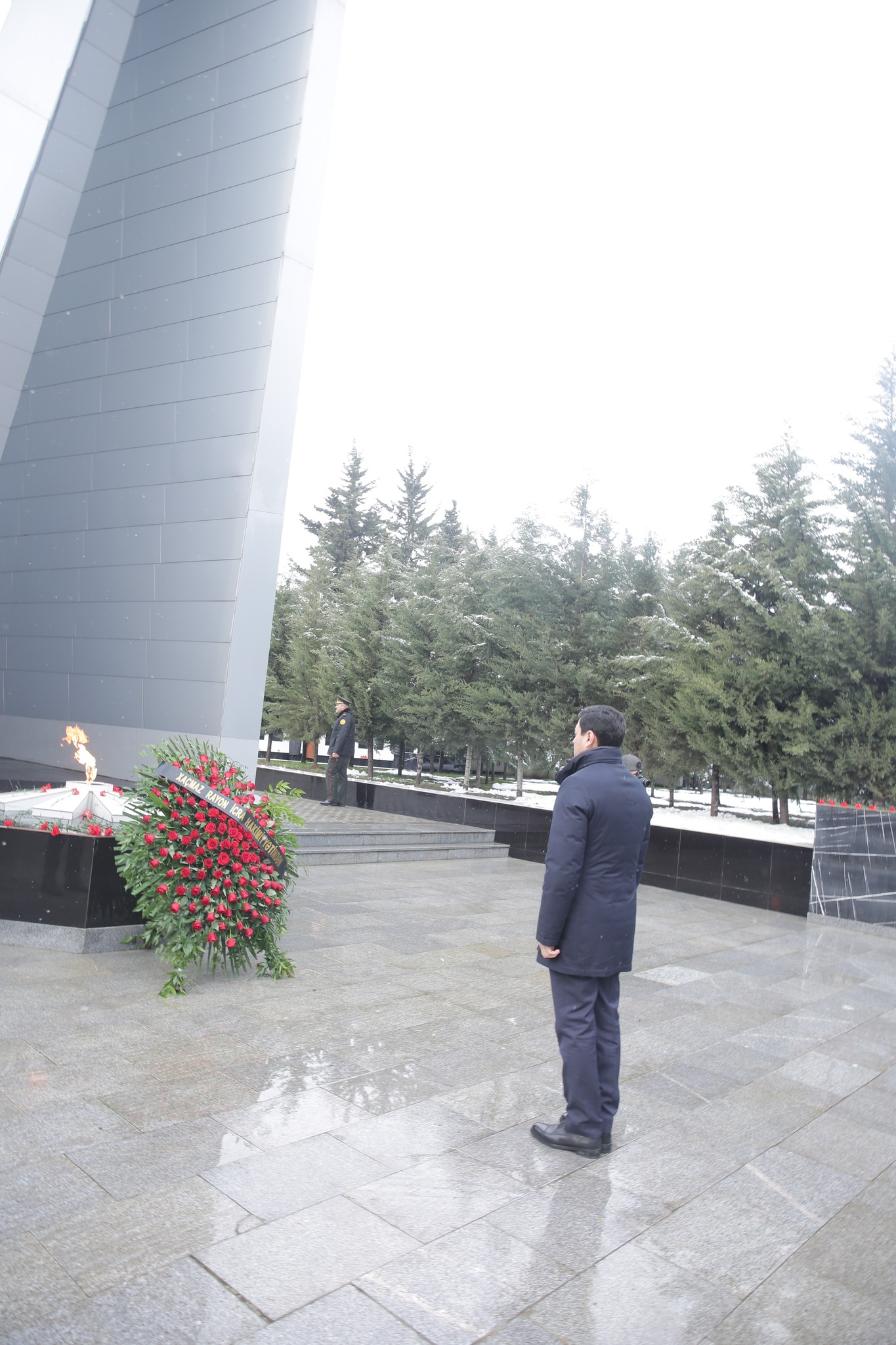 Xaçmaz Rayon İcra Hakimiyyətinin başçısı Elnur Rzayev Xaçmaz şəhərindəki Şəhidlər Xiyabanında “Əbədi məşəl” abidə-kompleksi önünə əklil qoyub.