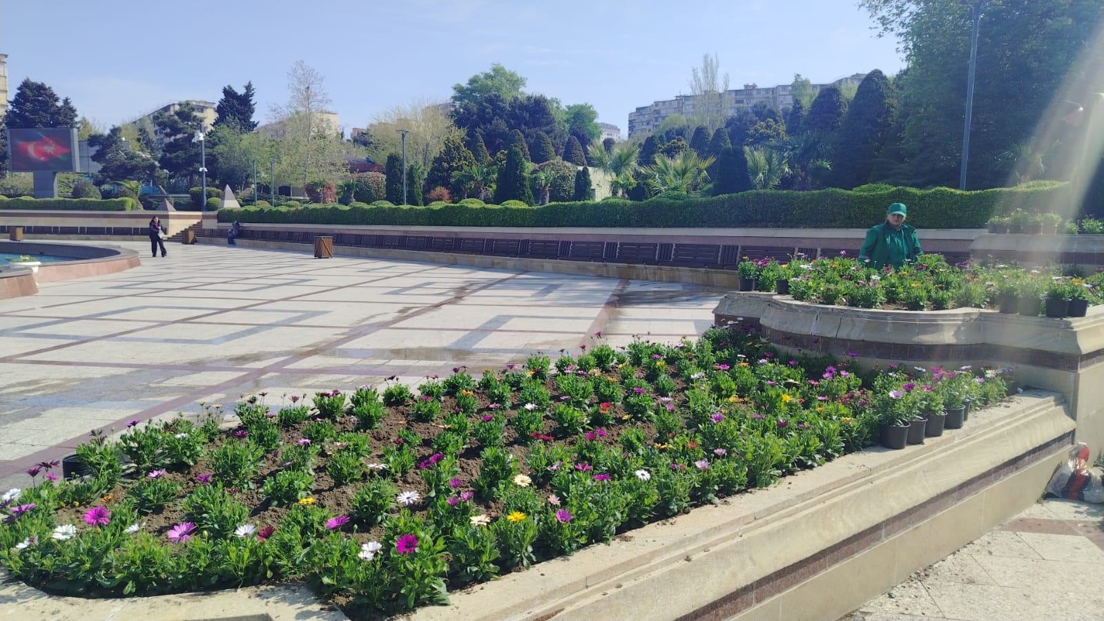 Yaz mövsümünün gəlişi ilə əlaqədar Xətai rayonu ərazisində abadlıq və yaşıllaşdırma tədbirləri geniş vüsət alıb. Bu çərçivədə rayonun mərkəzi istirahət məkanlarından biri olan Heydər Parkı ərazisində yeni mövsümə uyğun olaraq müxtəlif növ rəngarəng gül-çiçəklər əkilib.